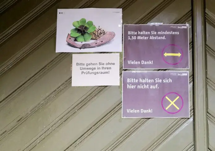 Foto: Schule mit Corona-Hinweis während der Hochphase der Pandemie, über dts Nachrichtenagentur