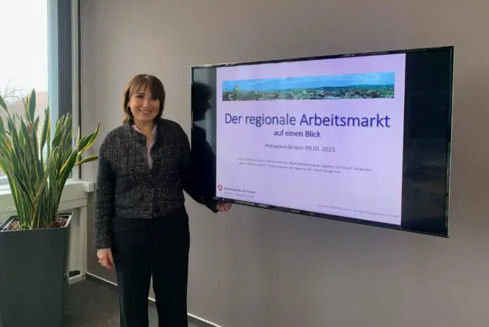 Die Vorsitzende der Geschäftsführung der Agentur für Arbeit Osnabrück Christiane Fern stellt die Arbeitsmarktbilanz 2022 vor. / Foto: Emrich